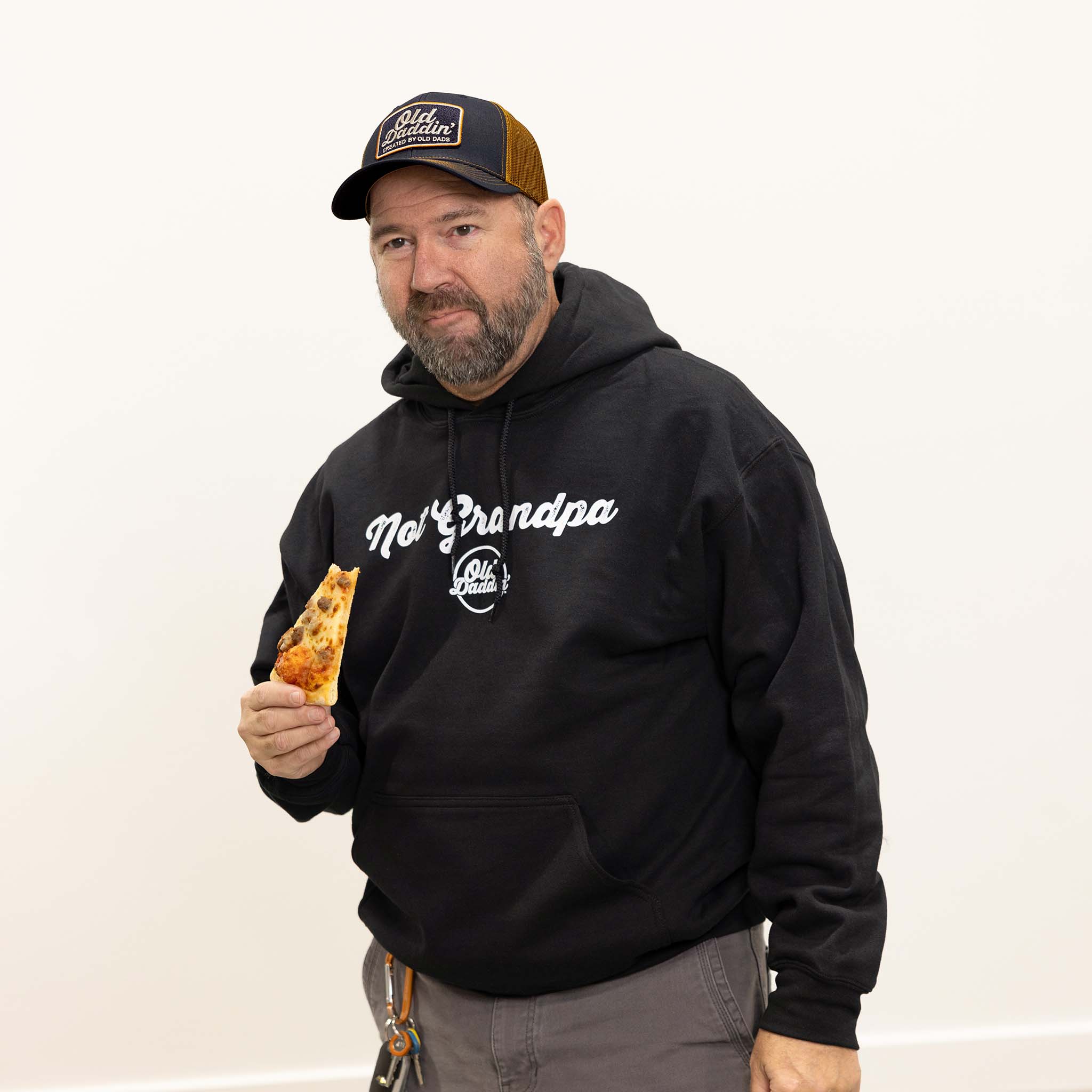 This bundle was born during an Old Daddin’ photoshoot when our buddy Collin casually reminded everyone what dads really do best: show up, handle business, and locate the nearest slice. The result is a limited-time set that looks like you’ve been doing this a while… because you have.